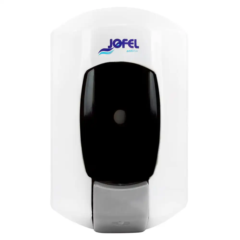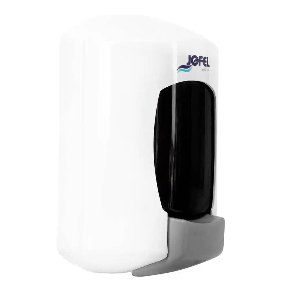 Dispensador de jabón rellenable, posee un mecanismo interno de pulsador que evita el escurrimiento de jabón.