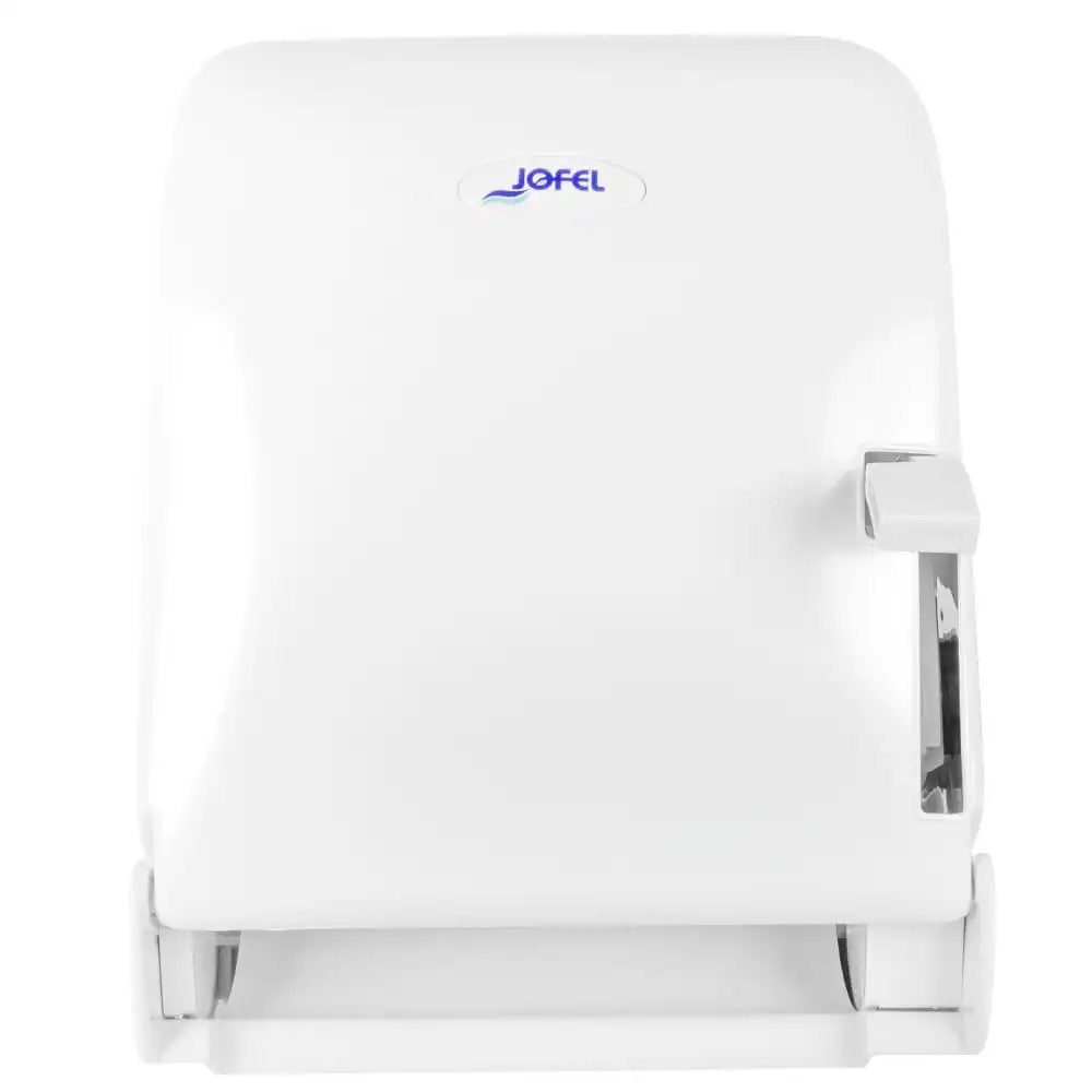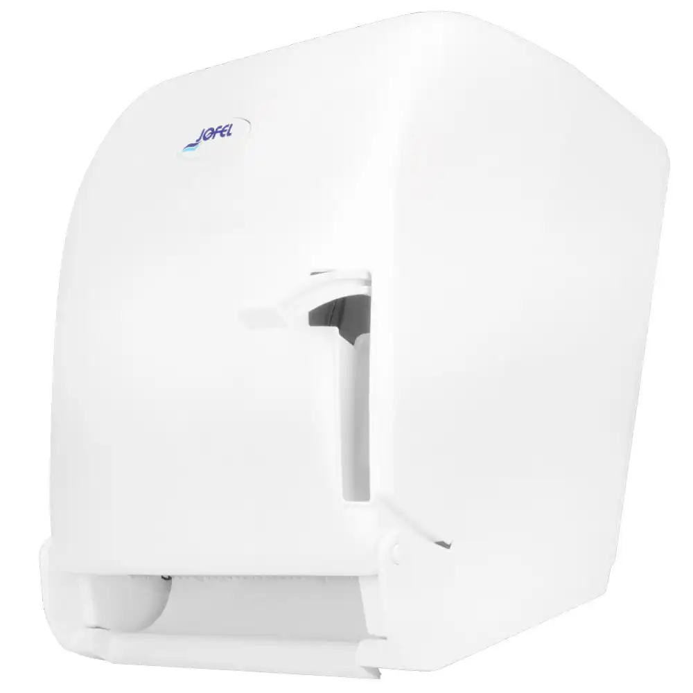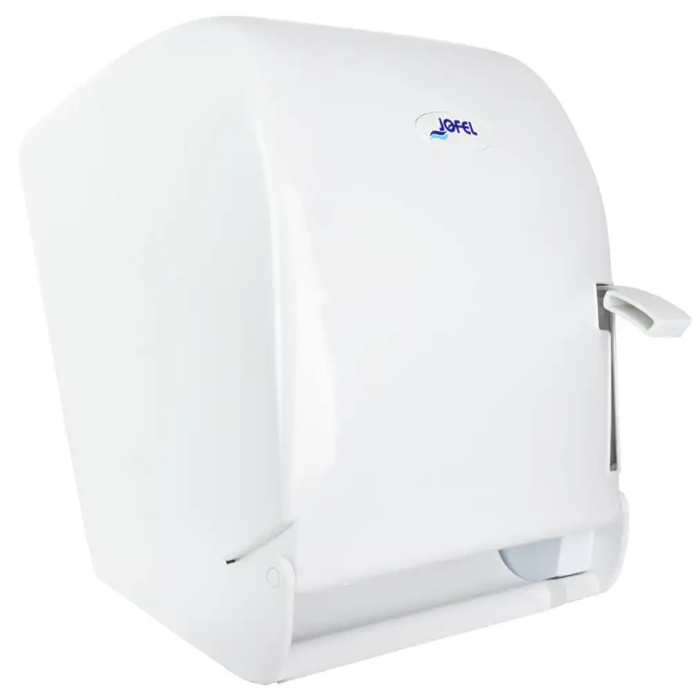 Dispensador de toalla en rollo, accionamiento por palanca.