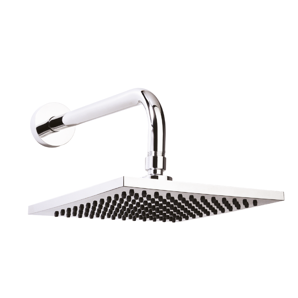Regadera de chorro fijo con sistema anticalcáreo. Incluye brazo y chapetón.